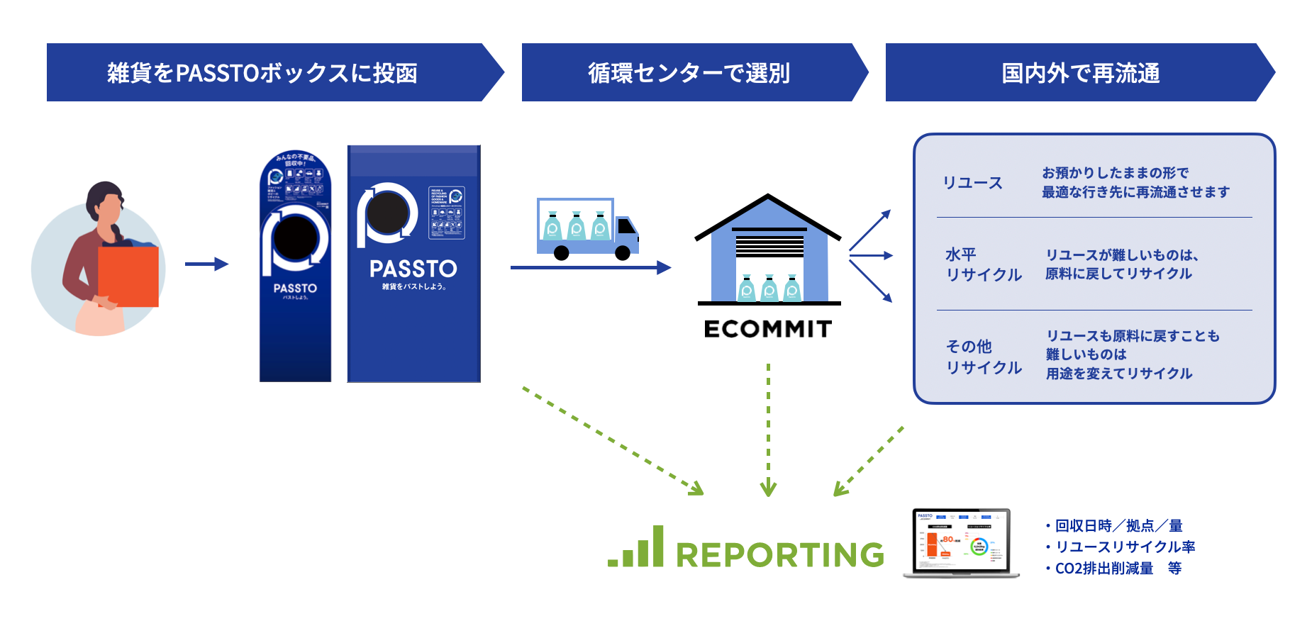 鎌倉市役所や公共施設にPASSTOの回収ボックスを設置し、市民が雑貨のリユース活動を通して資源循環に参加しやすい環境を提供する。自治体による雑貨のリユースを目的としたPASSTOの設置は、全国で初だという。