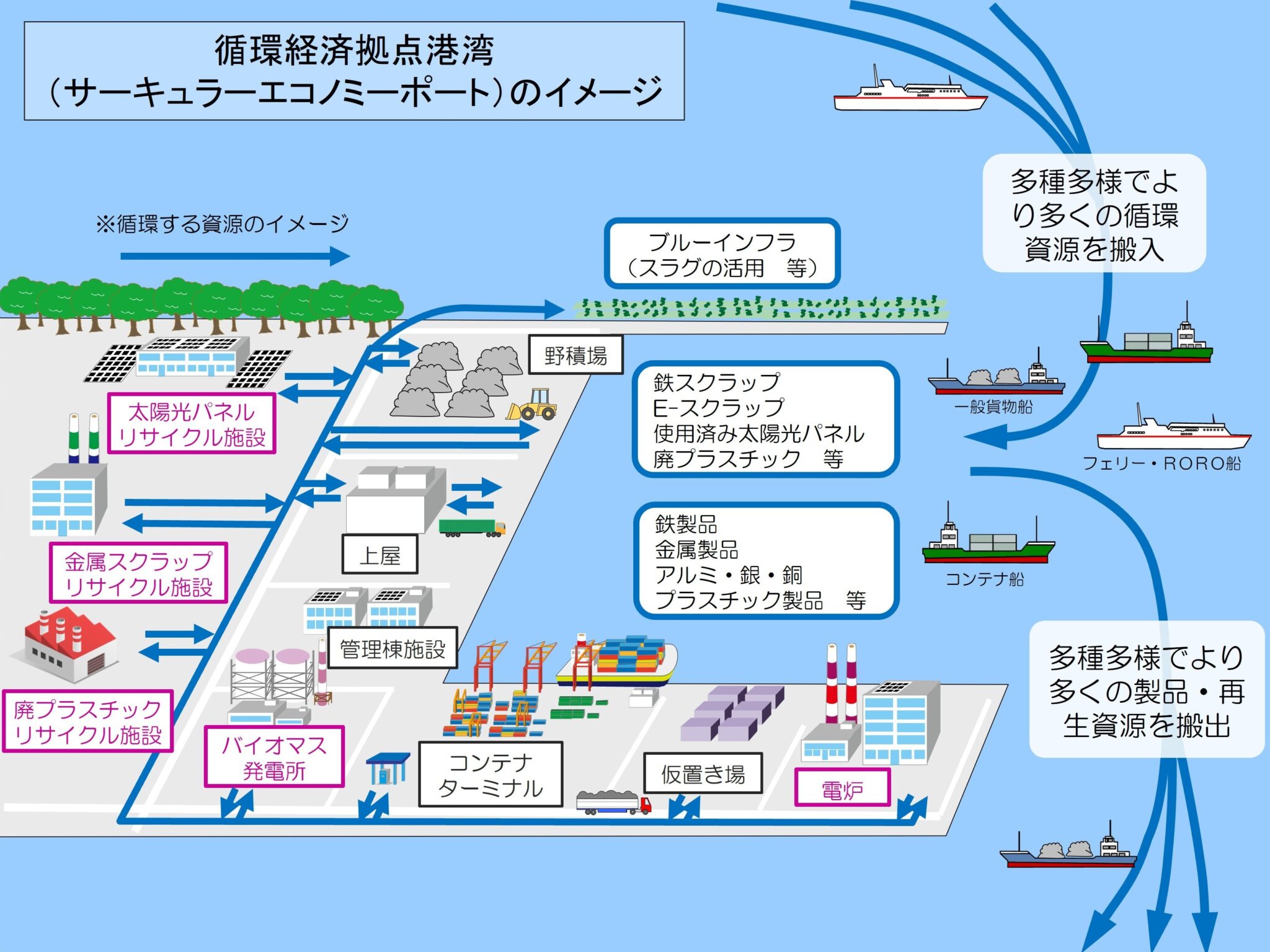 また、従来のリサイクルポートについても、サーキュラーエコノミーポートへの移行を通じて機能の高度化を図る方針だ。