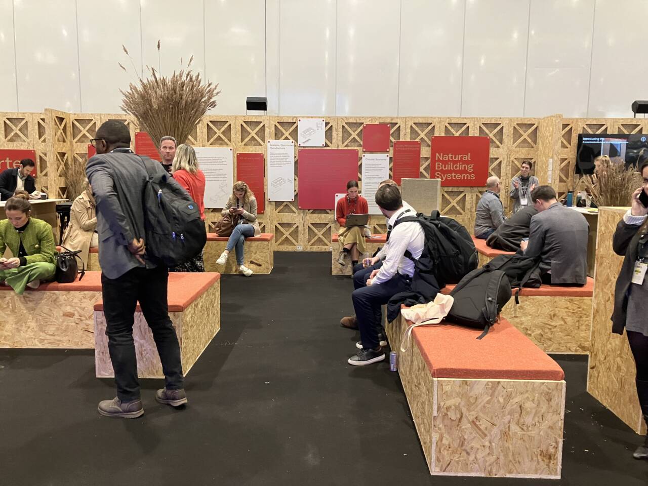 2025年3月、英国ロンドンで開催された建築・サステナビリティの展示会「Future Build 2025」に訪れた際に、ひときわ目を引いたのが「Natural Building Systems」社のブースだった。金属パネルが立ち並ぶ会場のなかで、麻製の展示パネルやベンチが並ぶ空間は温かみを感じさせ、多くの来場者が足を止めていた。